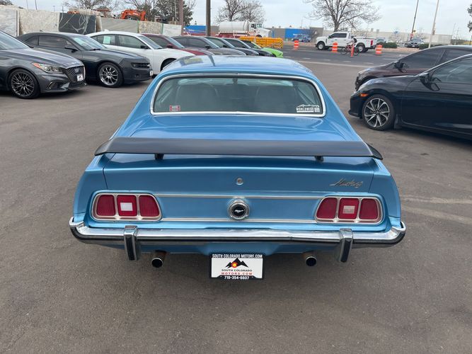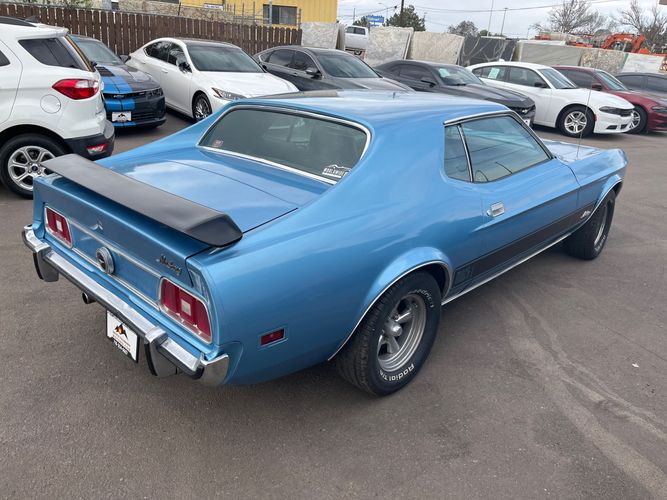 1973 Ford Mustang Mach 1, a classic American muscle car from the final year of the original Mach 1 generation. It features the fastback SportsRoof design, performance styling package, and is part of the third-generation Mustang lineup known for its larger body and optional V8 engines. This model represents the end of the early Mach 1 era, combining sporty appearance with vintage Ford performance heritage.