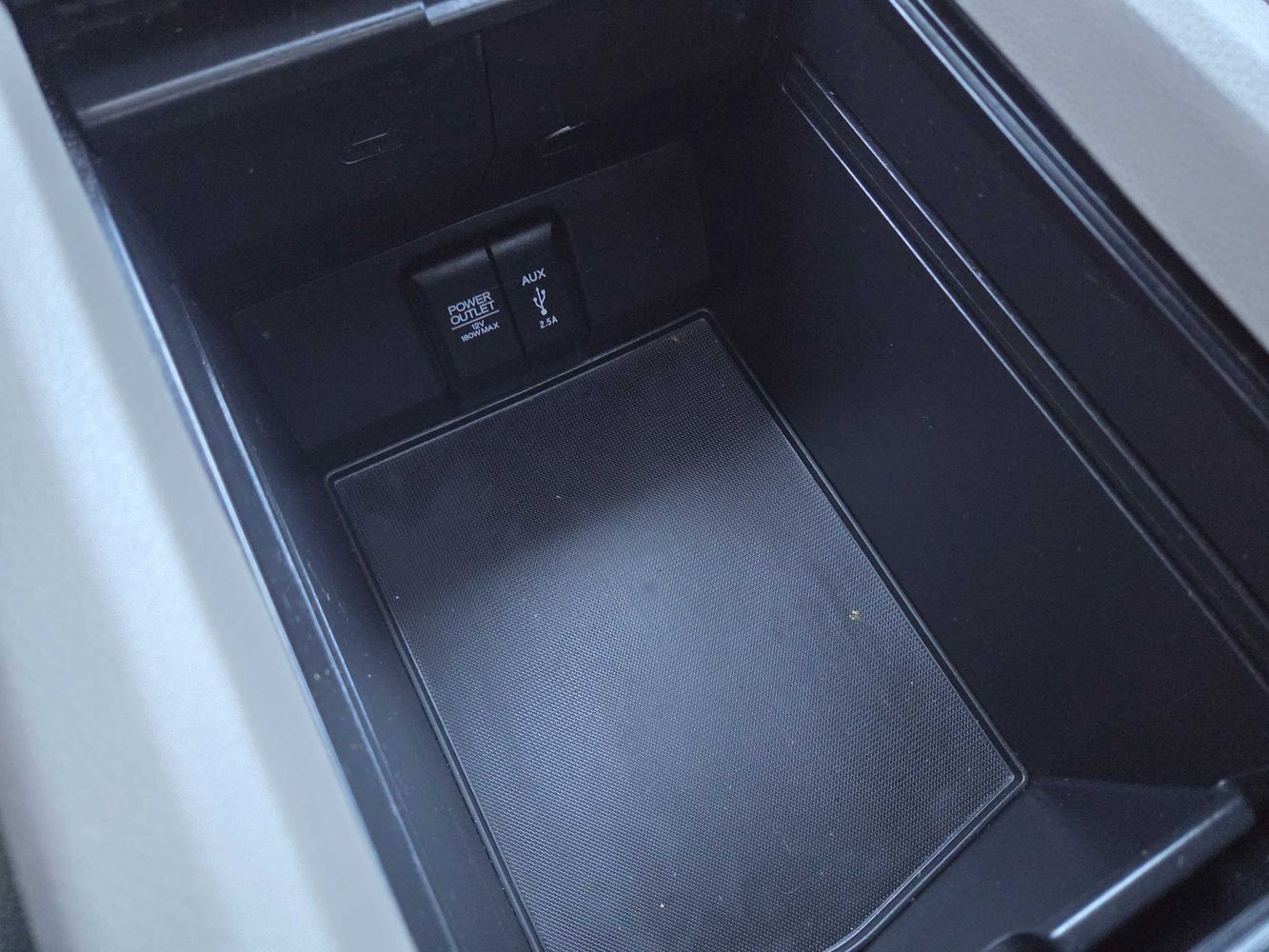 Floor console storage: Covered floor console storage